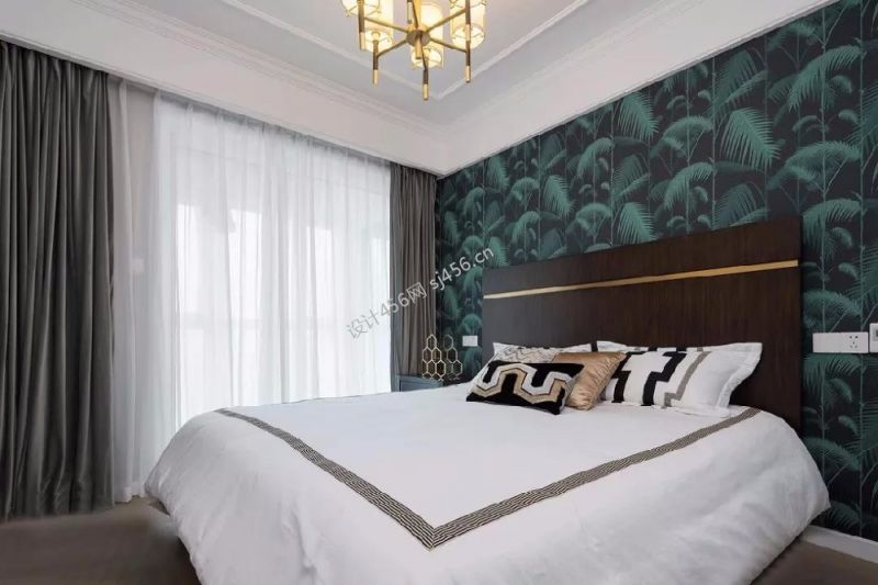 96㎡简约美式三居室卧室背景墙装修效果图