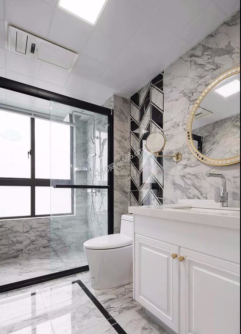 96㎡简约美式三居室卫生间洗漱台装修效果图