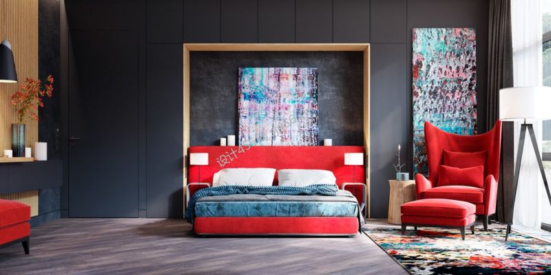 106平米现代简约三室两厅卧室背景墙装修效果图