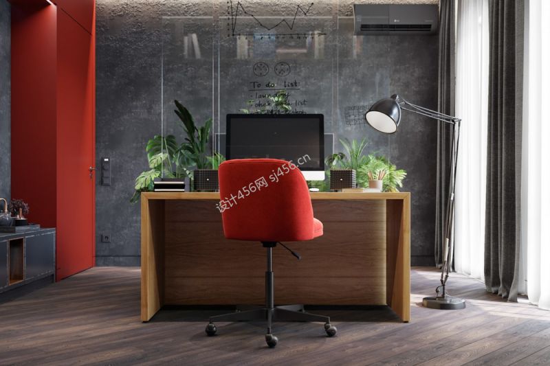 106平米现代简约三室两厅书房书桌装修效果图