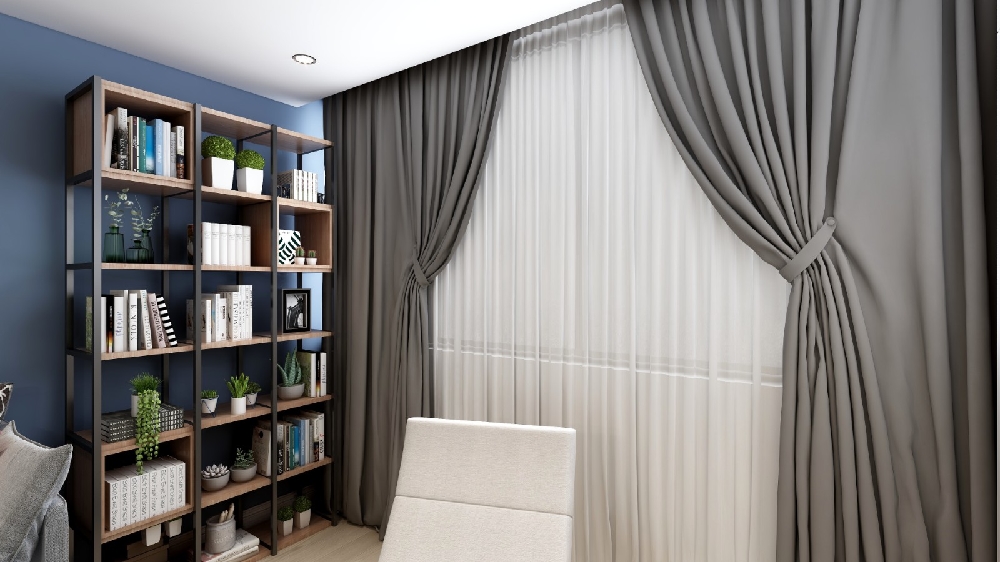 黑灰和白纱的双重窗帘,在幽暗安静和自然采光中轻松切换。
