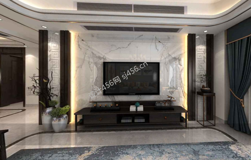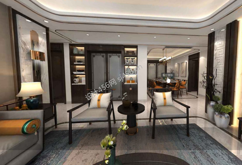 襄阳海内设计 襄城帝花溪谷别墅300平家装新中式风格