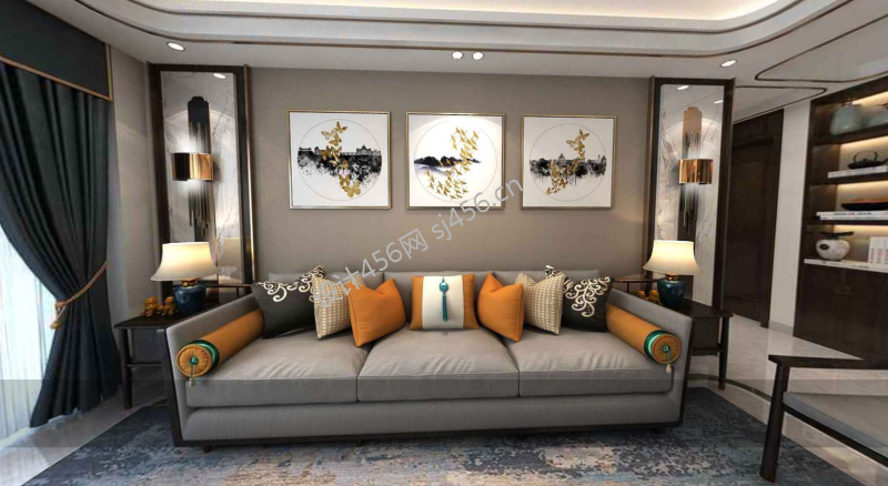 襄阳都市花园家装120平新中式风格三居装修案例风效果图