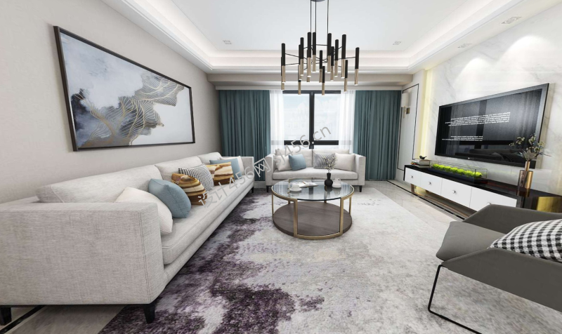襄阳都市花园家装120平新中式风格三居装修案例风效果图