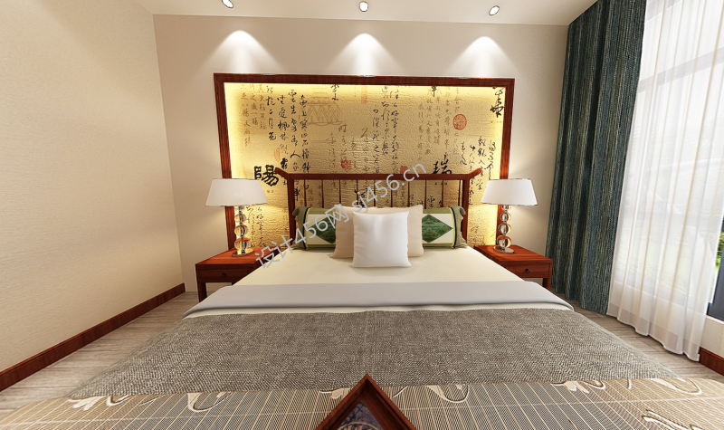 襄阳都市花园家装120平新中式风格三居装修案例风效果图