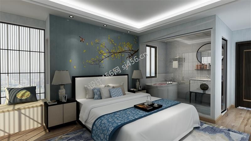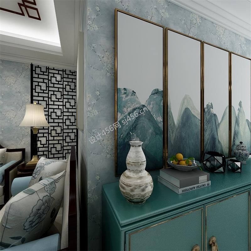 襄阳都市花园家装120平新中式风格三居装修案例风效果图