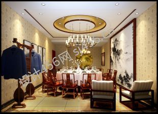 绿尚装饰 490平米中式风格餐厅酒楼装修设计效果图