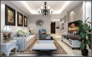 绿尚装饰 106平米现代三室客餐厅装修设计效果图
