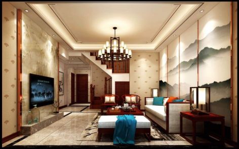山水华府新中式170平米复式装修设计效果图风效果图