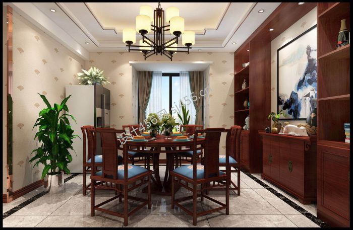 水岸新城142平米四居室新中式风格装修设计效果图风效果图