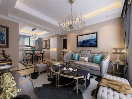 咸阳力高御景湾二居室装修简欧风格家装案例风效果图