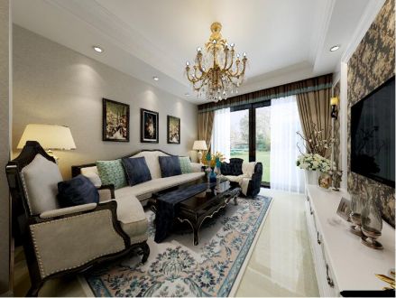 奥林匹克花园95平米二居室装修简欧风格家装案例风效果图