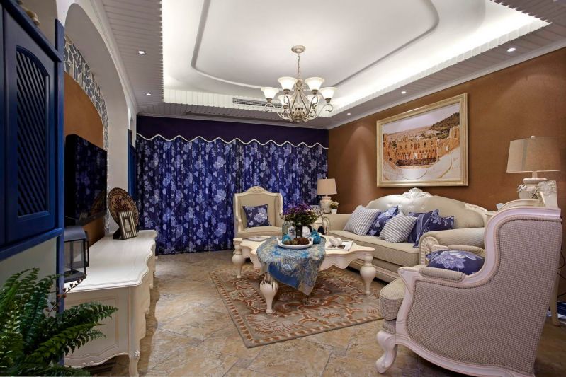 龙湖彩虹郦城地中海风格122平米三室两厅装修案例