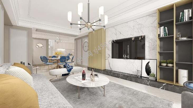 滨江·翡翠城128平米轻奢风格三居室装修设计效果图风效果图