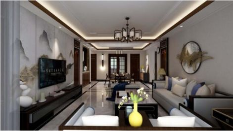 日月星城141平米新中式风格装修案例欣赏风效果图