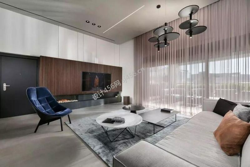 枫丹丽舍186平米联排别墅装修高级灰家装案例参考风效果图