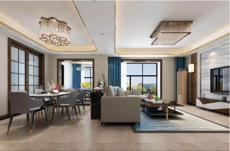 福林双鱼湾三居室装修轻奢新中式风格家装案例参考风效果图