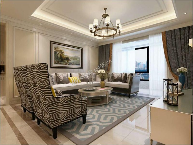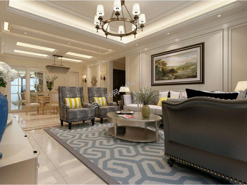 蓝光公园华府顶跃装修美式风格家装案例欣赏风效果图