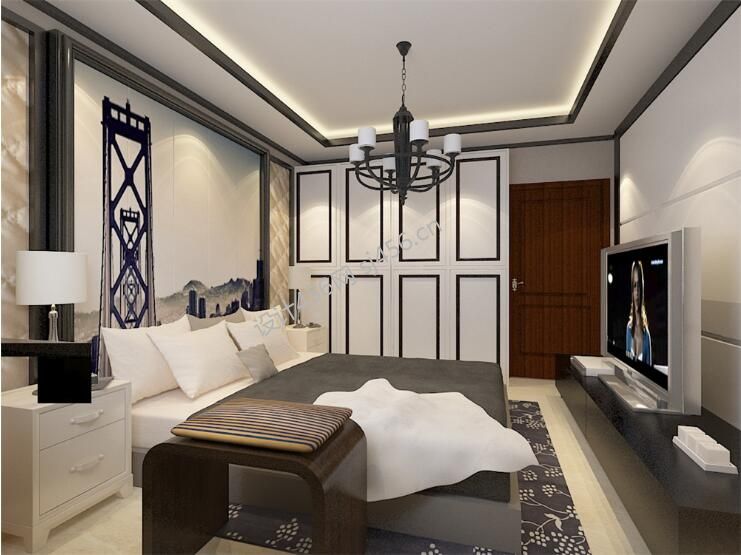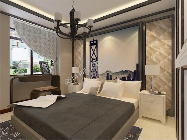 外滩一号三居室装修中式风格家装案例参考风效果图