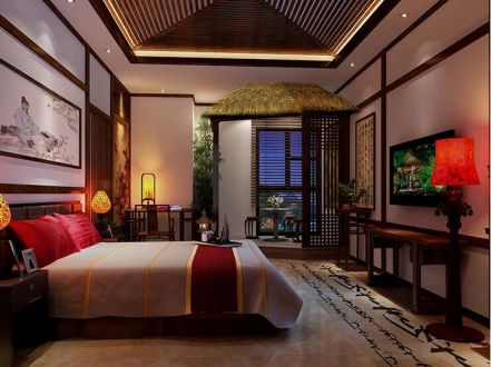 主题酒店1800平米装修中式风格效果图案例风效果图