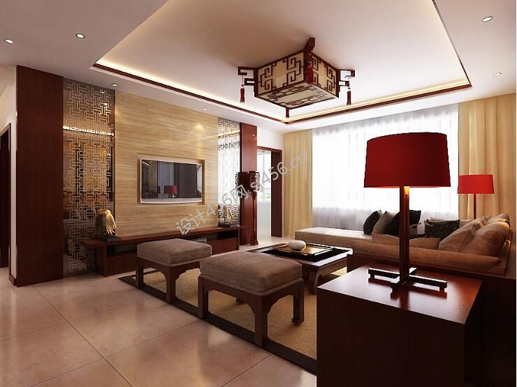 咸阳聆水居三居室装修中式风格家装案例欣赏风效果图