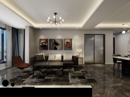 咸阳雁滩花园108平现代轻奢风格装修案例欣赏风效果图