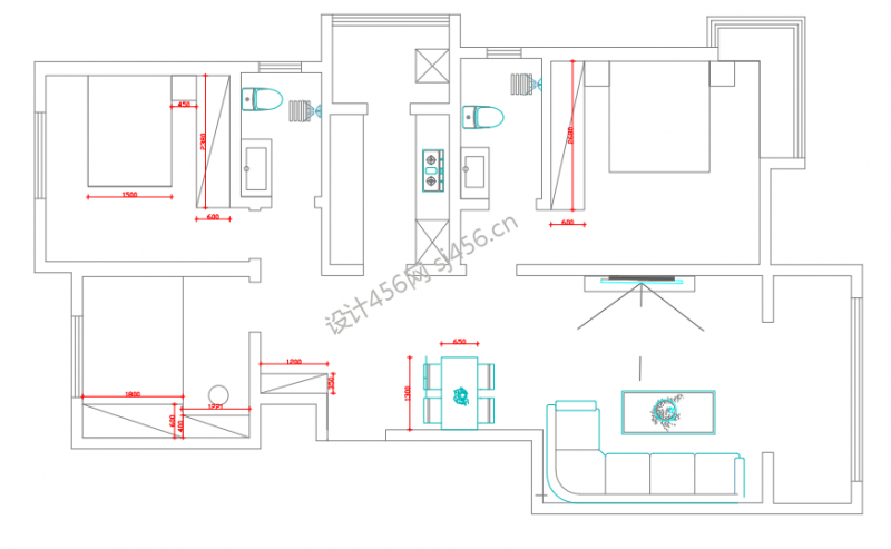 成国右岸108.8㎡三居室现代简约风格案例分享风效果图