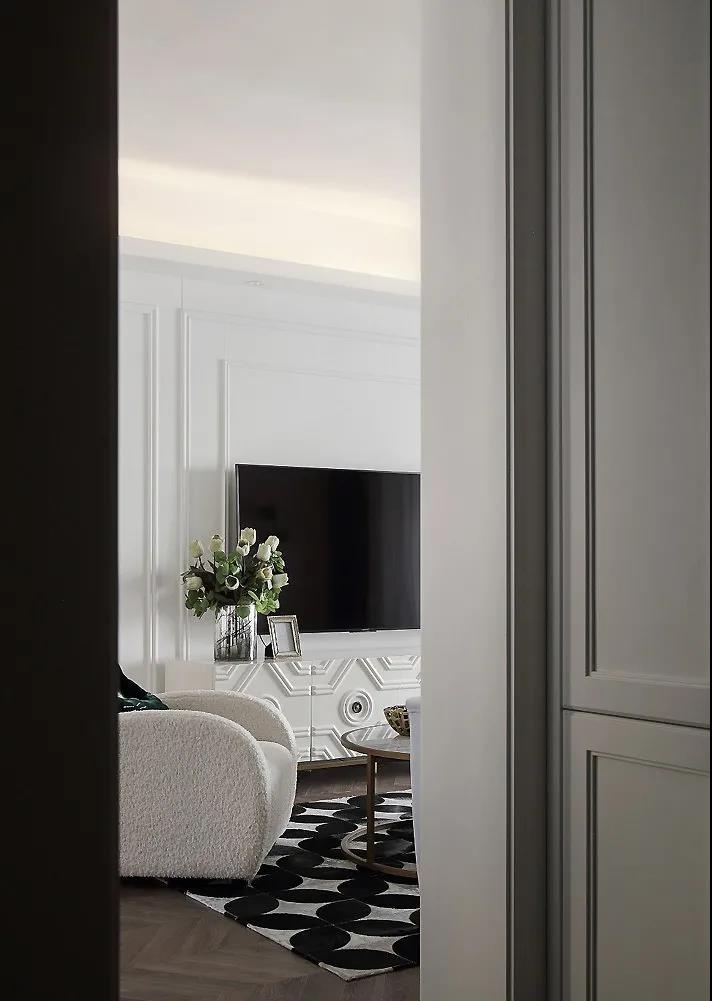 客厅的两面墙都选用了白色的护墙板,提升了整屋的颜值,再通过简单的线条,使墙面更具层次感。