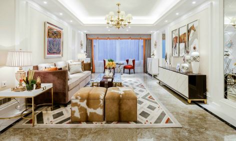 碧桂园秦都府新古典风格118平米三室两厅装修案例风效果图