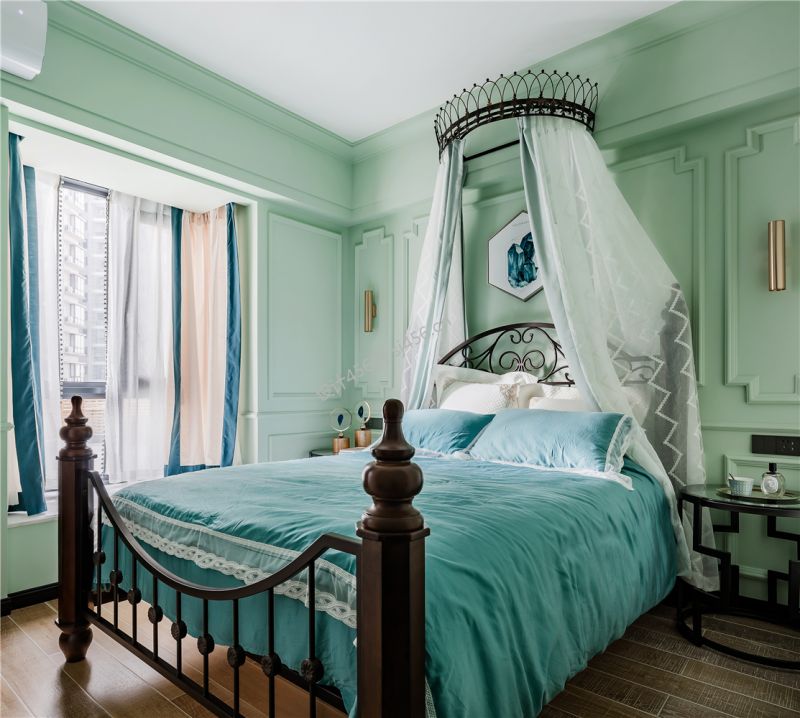 混搭风格130平米三室两厅卧室窗帘装修效果图