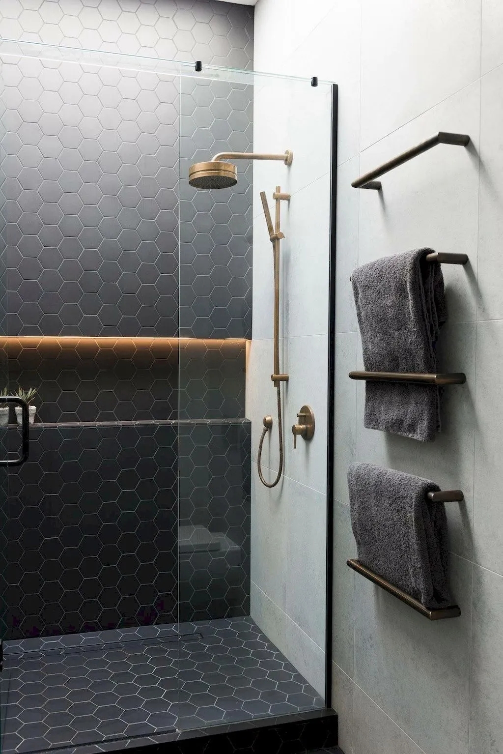 壁龛是开发商设计的,在花洒旁边,平时洗澡时放个洗发水、沐浴露、洁面乳,你别说,还是挺顺手挺方便的。