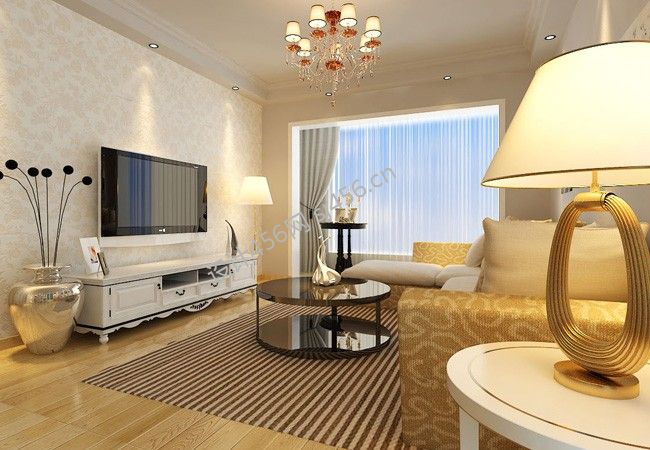 2020典型简欧风格客厅效果图 电视壁纸背景墙图