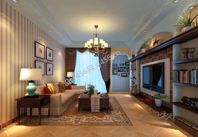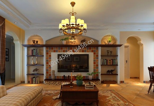 客厅美式风格装修 2020客厅电视墙置物架装修