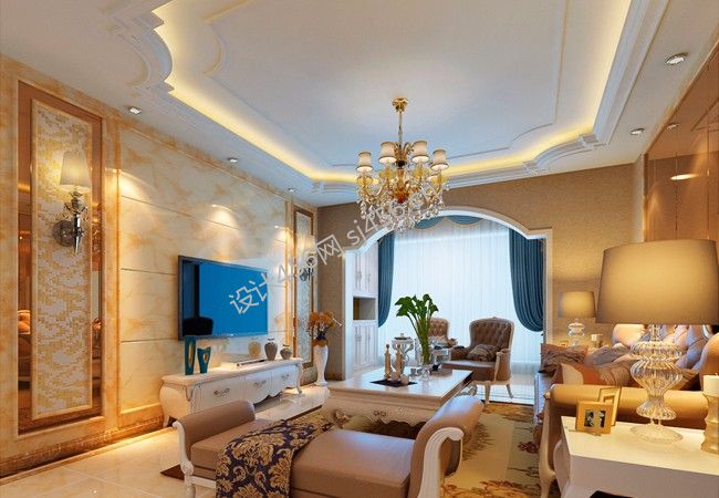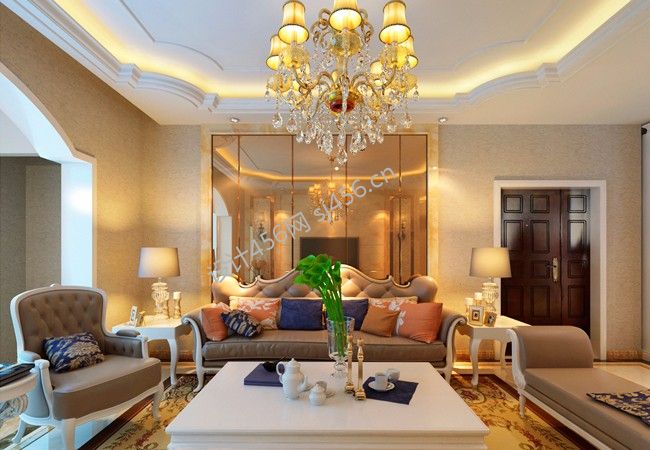 2020简约欧式客厅效果图 2020客厅水晶吊灯图片
