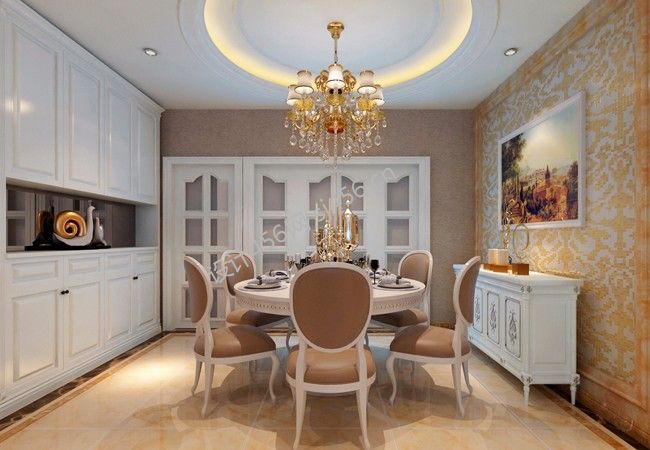 简约欧式餐厅装修效果图 2020白色酒柜装修效果图