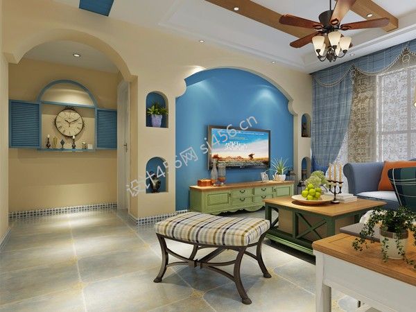 2020地中海客厅墙面装饰装修效果图 2020地中海客厅装修效果图
