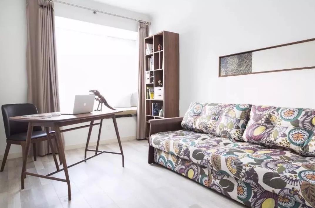 如果家里不能做独立书房,那么可以选择把次卧做出榻榻米加上书桌柜、衣柜的组合式设计,把收纳做到位,也方便办公和休息。