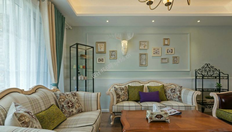 田园北欧风100平二居客厅沙发背景墙设计图片