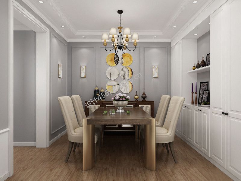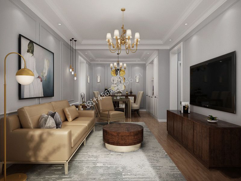 万新弘文府轻奢风格122平米三室两厅装修案例风效果图