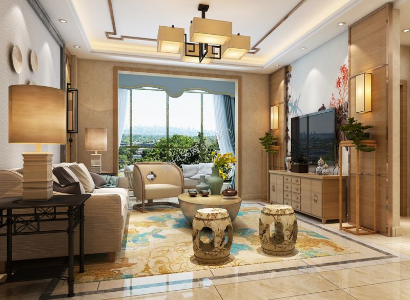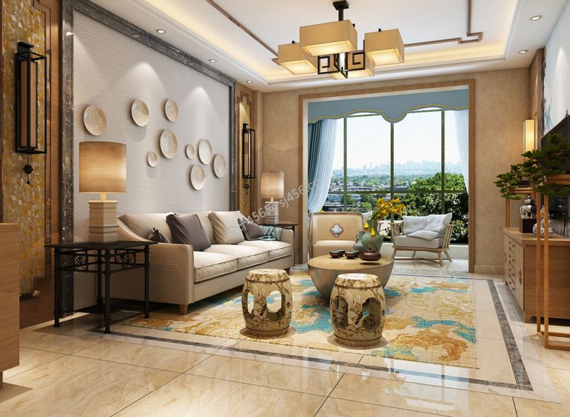 中式欧式客厅落地窗装修效果图片