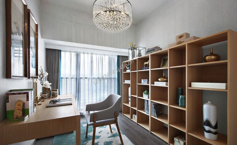 中式风格126平米三室两厅书房装修效果图