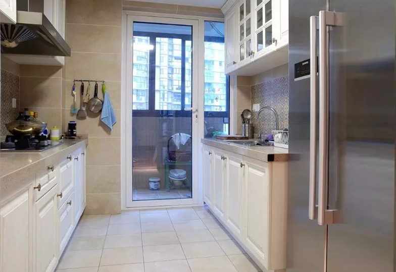 若想让小范围看上去显宽广,首先要在色调上下功夫,切勿弄得花花绿绿的,尤其要注意不能使用印有立体图案或明暗对比强烈的拼花瓷砖,这样不仅会缩小视野,同时还会因过于凌乱而使得烹饪者烦躁不安。
