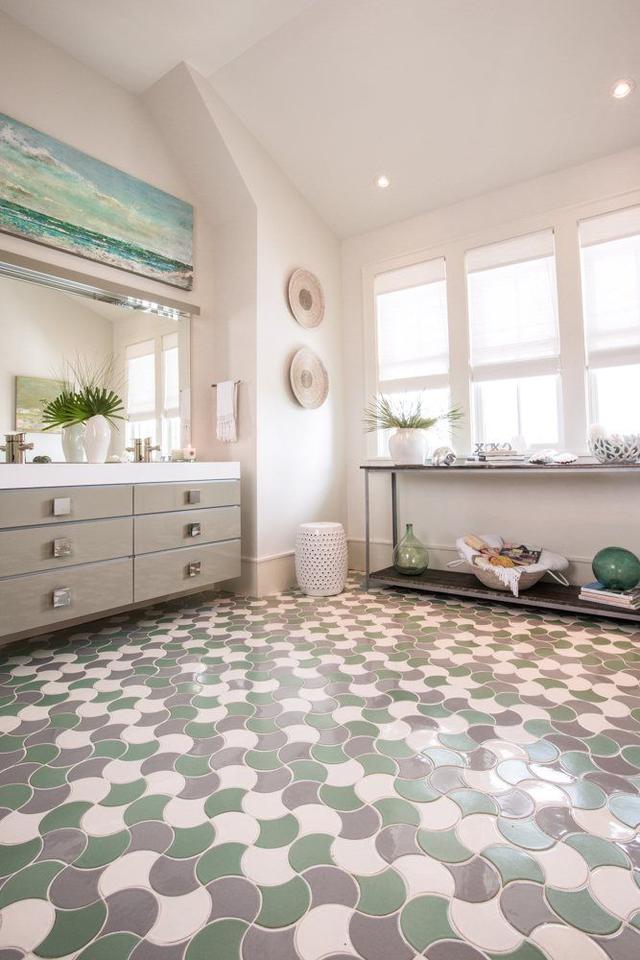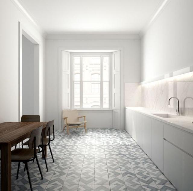 瓷砖最大的优点就是花色丰富,既然选了瓷砖,为何不来个大胆的花色?花砖除了厨卫阳台外,大面积铺也可行,毕竟它一开始进入中国就是一百年前华侨的公馆,挑选合适的款式就好。而且和仿大理石纹不一样,花砖是小了才好看,就怕没钱付人工费。使用面积小,花砖颜色适当丰富一些;使用面积大,双色或三色花砖也能有特别棒的效果。