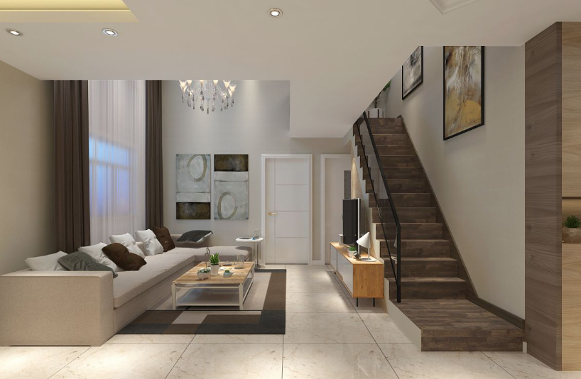 在跃层装修中,楼梯作为上下楼层的链接,设计的好坏是非常重要的。首先要满足上下楼流畅的通行,楼梯踏步的宽高要符合人体工程学尺寸。在整个设计中安全性也是非常重要的,特别是扶手连接要特别稳固。