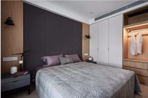 这是一套160平米的现代极简风格装修案例,整体简约大方的空间基础,搭配上黑白灰的时尚质感,通过明亮大方的采光,舒适轻松的用硬包做床头墙,卧室瞬间