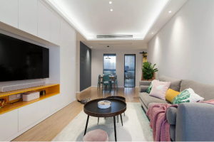 本案建筑面积为115㎡,格局为典型的三室两厅,设计风格为现代极简,主色调为白色+深灰色,再搭配现代简洁的家具,似乎整个空三居室现代宜家,简洁空间+活泼软装,让空间充满舒适感