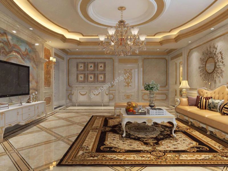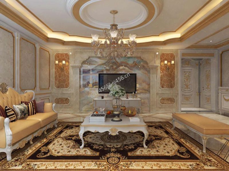 桃花源170平欧式风格客厅地毯装饰效果图片