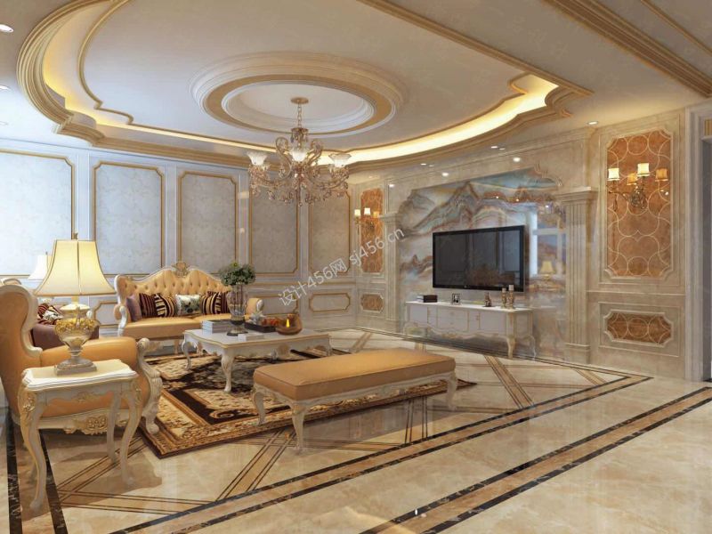 桃花源170平欧式风格客厅圆形吊顶设计图片