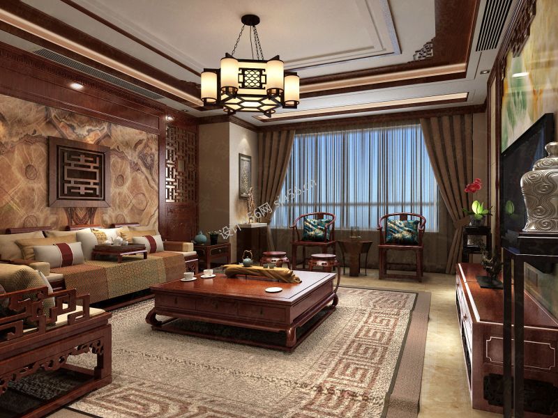 泛华公馆189平米四居中式背景墙装修设计效果图欣赏