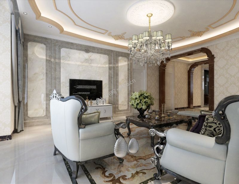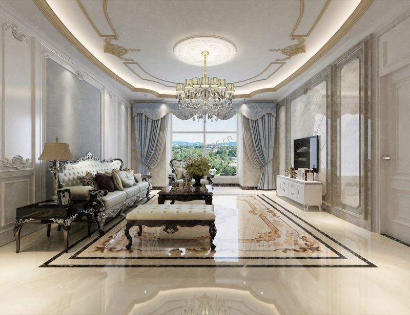 开莱国际社区200平米四居欧式客厅吊顶装修设计效果图